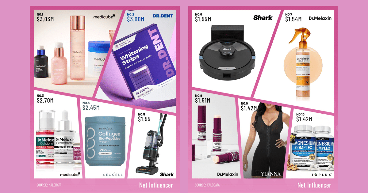 Beauty and wellness products dominated TikTok Shop in February, with skincare, supplements, and dental care claiming the top four spots. Dr.Melaxin placed three products in the rankings, Shark brought household appliances back into the mix, and the bottom six positions clustered within $130k of each other, the tightest revenue band the list has seen in months.