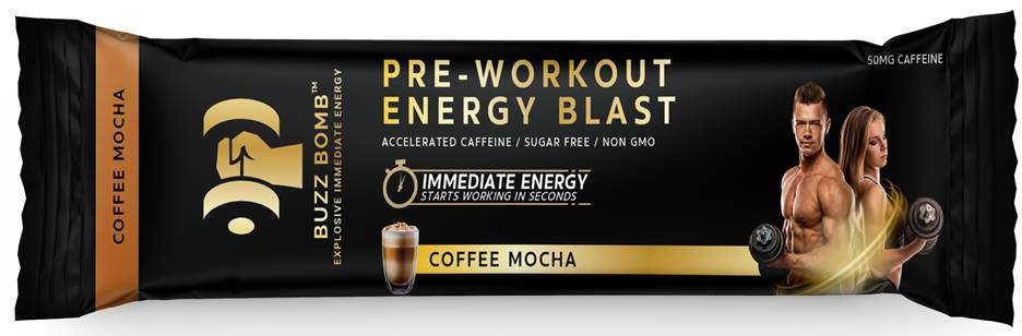 BUZZ BOMB delivers 50mg of caffeine through sublingual packets, with the company claiming effects in under two minutes, compared to the 20-30 minute activation typically associated with traditional pre-workout drinks.