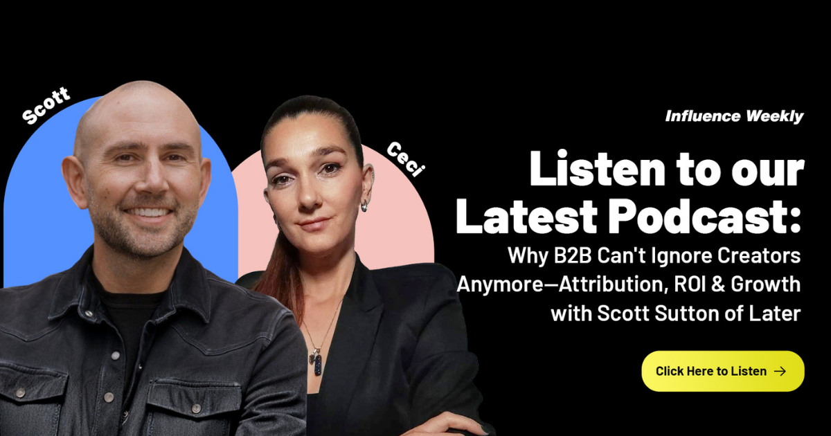 Scott Sutton, CEO of Later, sat down with Net Influencer Senior Editor Ceci Carloni to discuss why B2B brands are finally entering creator marketing and what it takes to do it right. Scott leads Later, the Influencer Marketing and social media management platform serving Fortune 5000 brands, including Walmart, Mastercard, and Procter & Gamble. Before Later, he was Chief Business Officer at ZoomInfo, where he helped grow the business from $150 million to over $1 billion in ARR.