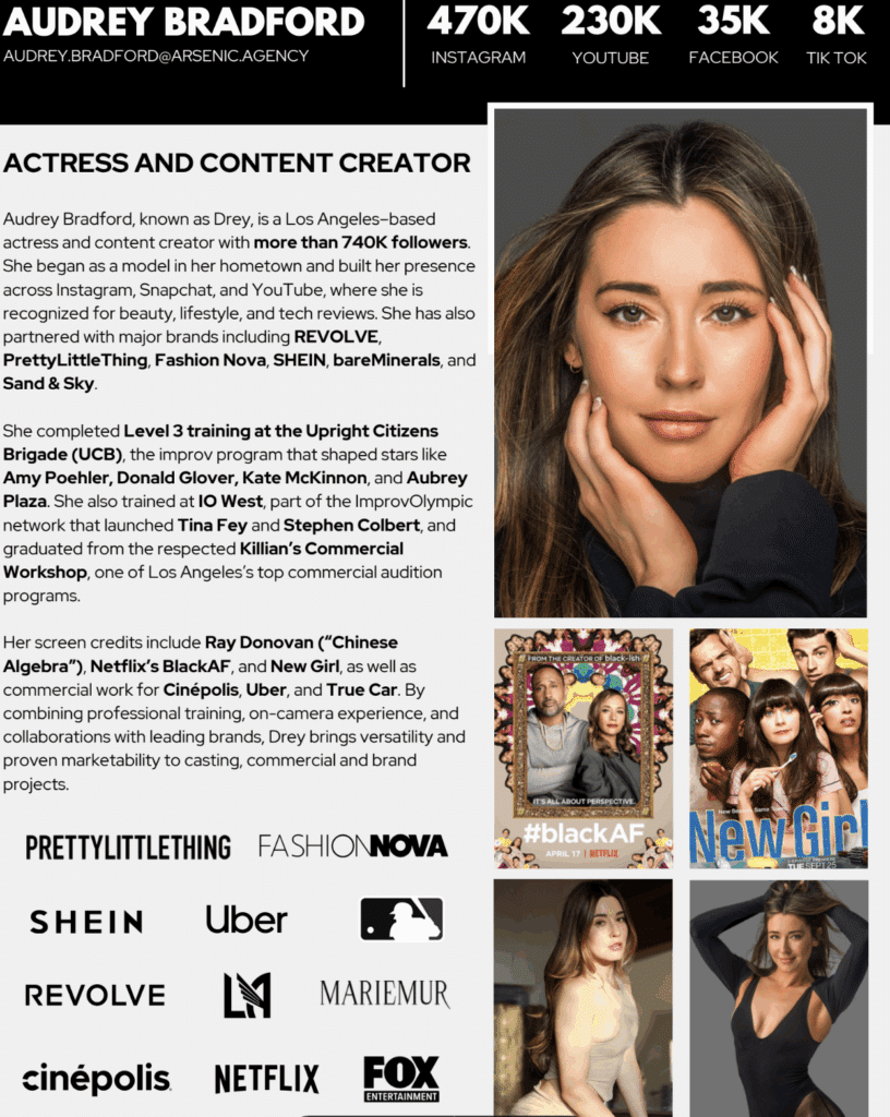 Audrey Bradford left her hometown of Albuquerque at 18 with nothing but determination and a risky housing arrangement with a stranger in Los Angeles. Today, the actress and content creator, known professionally as “Drey,” has built a following of over 740,000 across Instagram, Facebook, TikTok, and YouTube, and secured partnerships with major brands, including REVOLVE, PrettyLittleThing, and SHEIN.