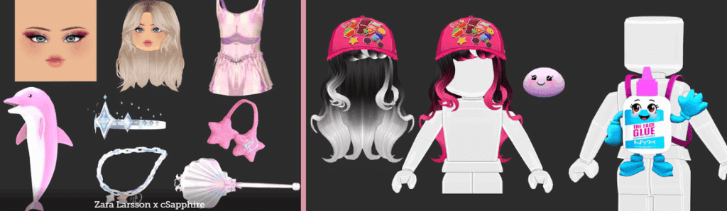 The transition marked a turning point. Kyasia opened her own UGC store, selling 3D clothing, accessories, hair, and makeup directly to users. “With classic clothes, it was more like spending money,” she explains. “Now it’s a healthy mix of brand collabs and UGC sales.”