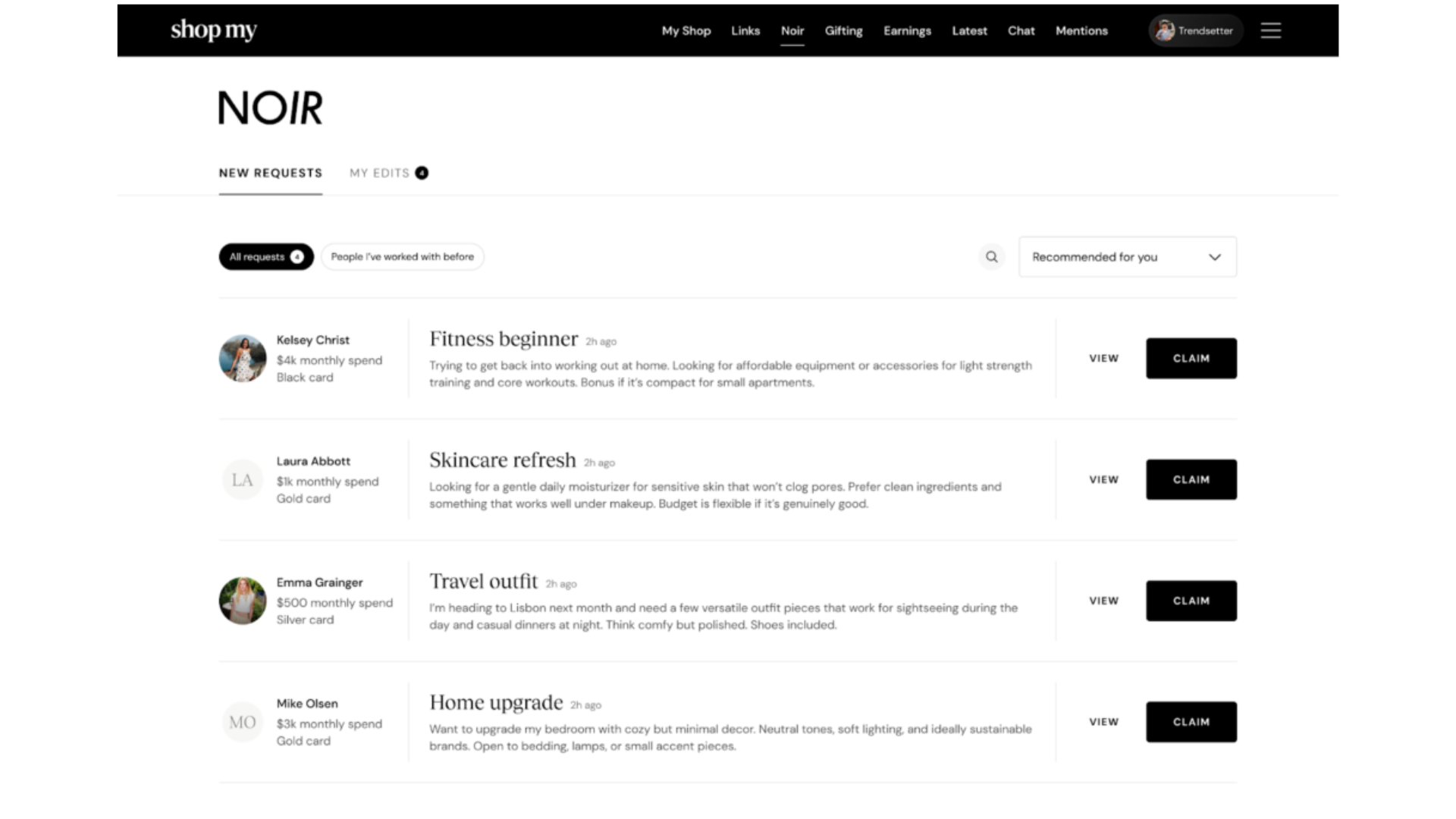 Noir is currently available to ShopMy’s gold and black tier members, the platform’s top spenders, with plans to expand eligibility over time. The service matches shoppers with curators based on brand preferences and style alignment rather than availability.