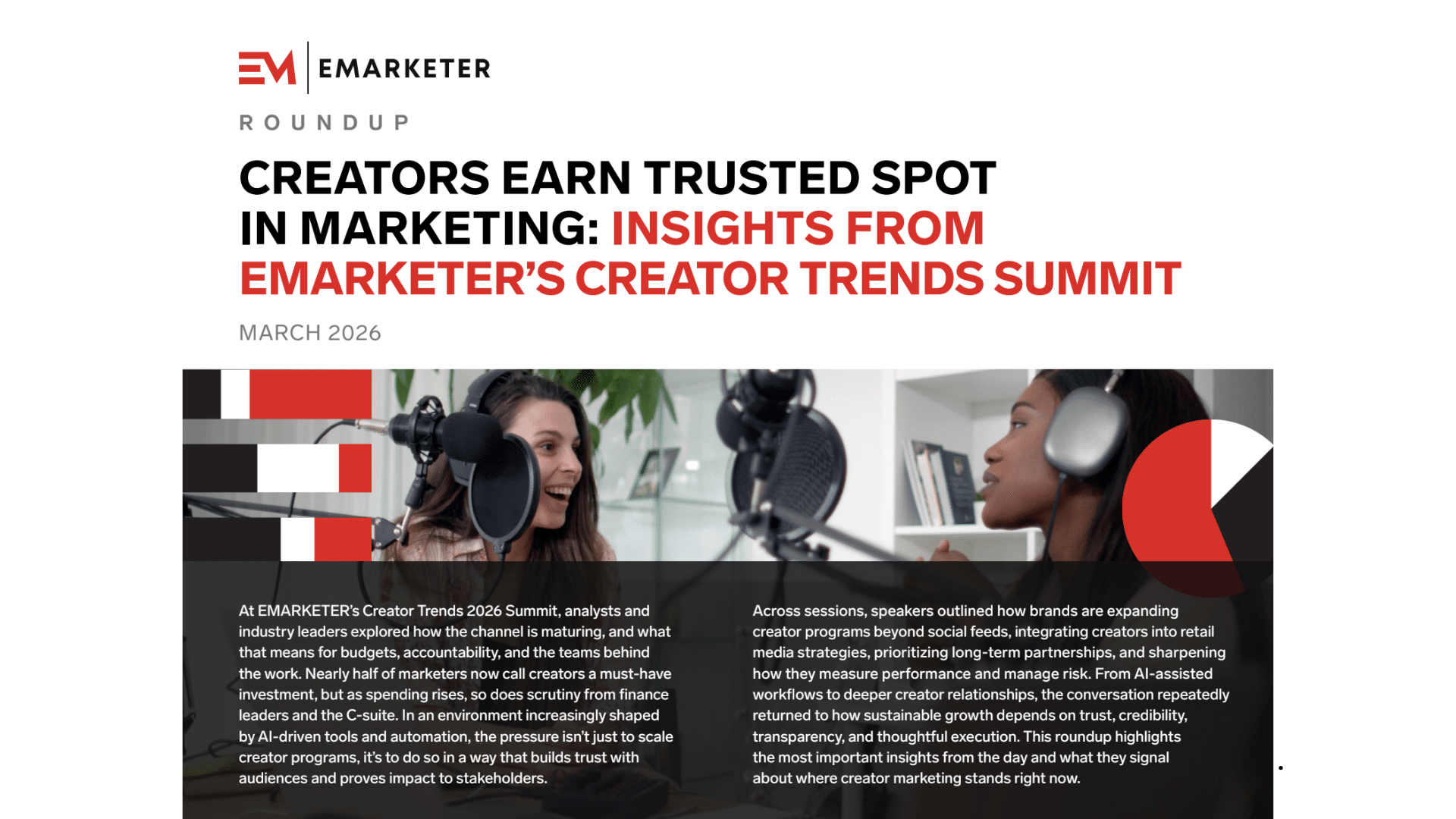 U.S. social media creator revenue will reach $21.10 billion in 2026, more than doubling since 2022, according to EMARKETER’s February 2026 forecast. The figures emerged from the research firm’s Creator Trends 2026 Summit, where analysts and brand executives outlined how creator marketing has expanded from social-first campaigns into retail media networks, connected TV, and in-store environments.